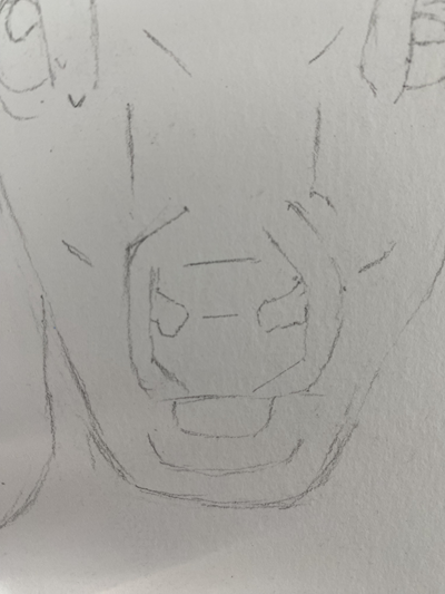 Pour le museau, je pose comme détails les narines, le contour de la bouche. Ce qui donne ceci :