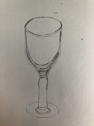 Je m'applique à réaliser des arrondis pour le pied du verre en bas et au haut du pied.