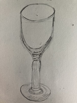Maintenant, je dessine l'intérieur du verre en faisant un trait arrondi pour marquer le fond. Je fais un autre trait pour le contour du bord du verre.
