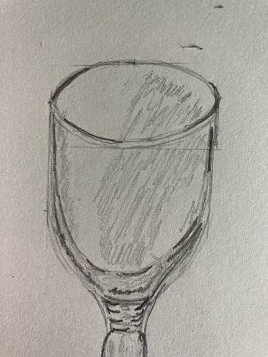 Donc je hachure avec mon crayon HB l'intérieur du verre. Je suis vigilante à ne pas trop appuyer car le verre est transparent, les reflets sont donc peu marqués.