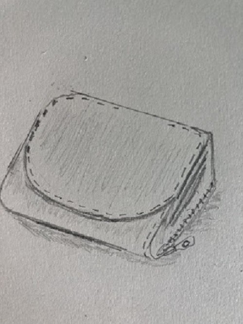 Maintenant que j'ai dessiné la forme générale du porte monnaie avec les détails, je peux m'atteler aux ombres. Ce qui rendra mon porte monnaie réaliste.