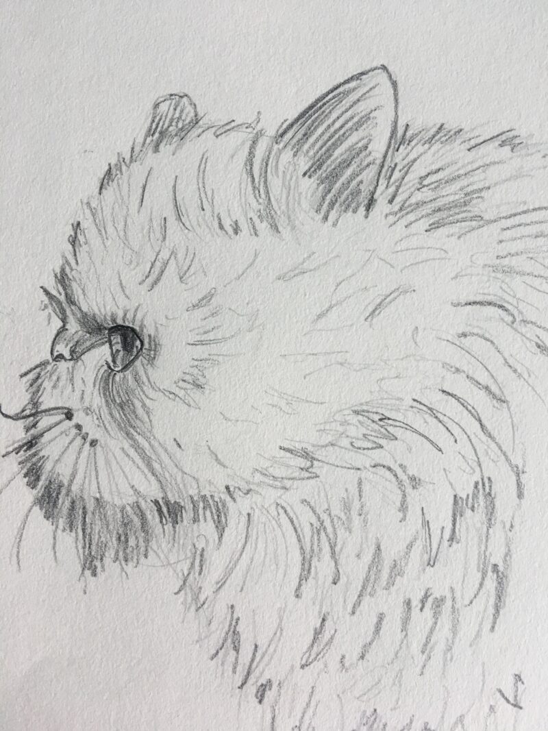 Ici, il ne s’agit pas de dessiner chaque poil, mais de suggérer la texture grâce à des traits souples.