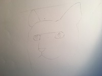 Je commence par ébaucher la tête du chat avec des formes simples.