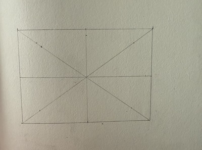 Dans l'exemple que je t'ai dessiné, le rectangle fait a peut près 12 cm de large et 8 cm de hauteur. Une fois fais, j'ai tracé les lignes qui vont donner le milieu. Ce qui donne ceci :