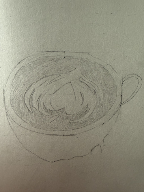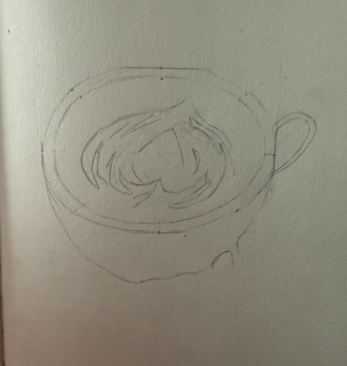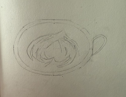 Première étape : Faire l’ovale de la tasse :