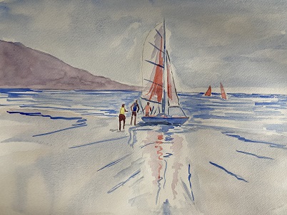 Dessiner un voilier sur la plage est pour moi un véritable moment de bien-être.