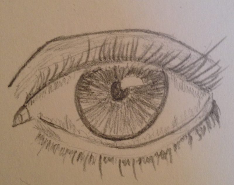 Commence par poser des ombres entre les cils et la paupière extérieure avec ton crayon 2B ou 4B.